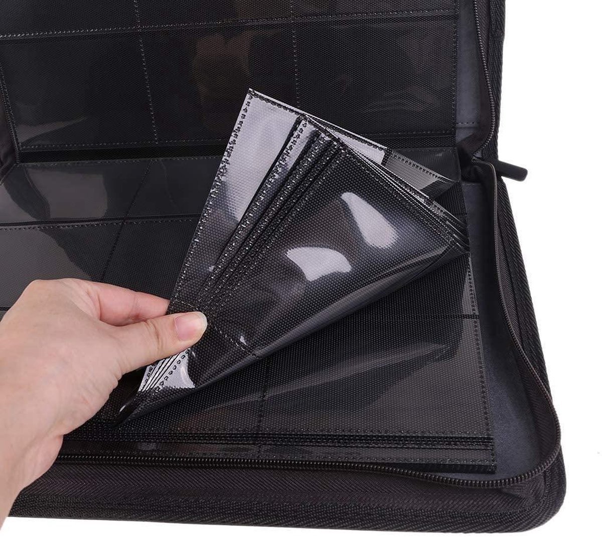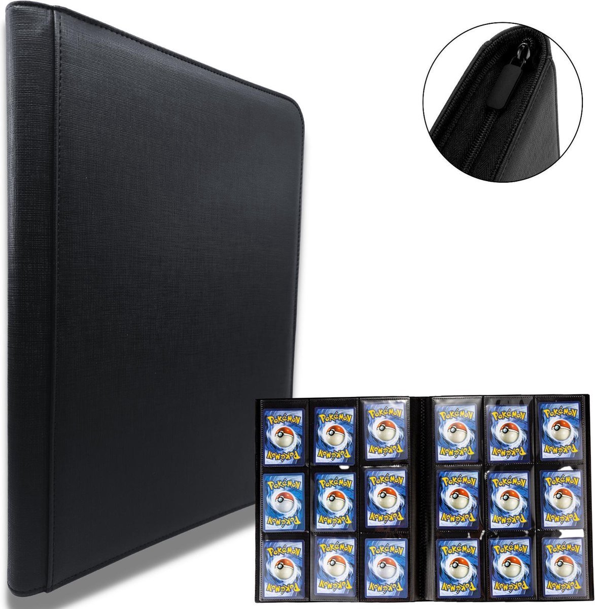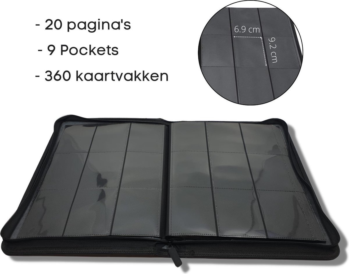 Een mooi vaderdag kado; een luxe verzamelmap met rits met plek voor 360 verzamelkaarten; voetbal, Magic the Gathering, Yu-Gi-Oh!, Pokémon etcetera.