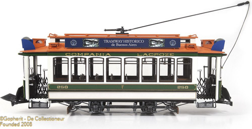 De Lacroze tram nr. 258 werd in 1927 gebouwd door de Porto Tram Company in Portugal, gebaseerd op het Brill 32‑ontwerp uit Philadelphia.